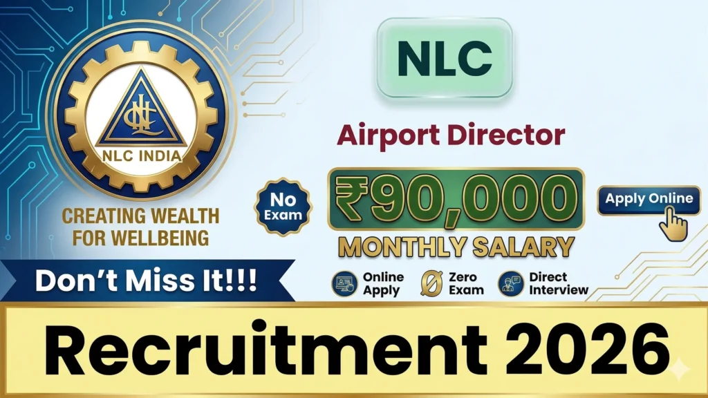 NLC Airport Director Notification 2026: सरकारी नौकरी की तलाश कर रहे अनुभवी उम्मीदवारों के लिए NLC India Limited (NLCIL) एक सुनहरा अवसर लेकर आया है। नवरत्न पीएसयू (Navratna PSU) ने नेवेली (Neyveli), तमिलनाडु में स्थित अपने एयरपोर्ट के लिए एयरपोर्ट डायरेक्टर (Airport Director) के पद पर भर्ती के लिए NLC Airport Director Notification 2026 का अधिकारिक नोटिफिकेशन जारी कर दिया हैं |